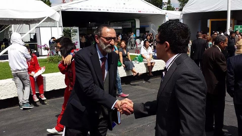 Nuestro Director General, Angel Gonzalez, saludando a personalidades organizadoras de la semana de educación financiera: